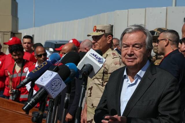 وحث غوتيريش في تصريح له، جميع الدول على استخدام نفوذها لإنهاء العدوان المأساوي على قطاع غزة، ودعم اتخاذ خطوات لا رجعة فيها نحو "المستقبل المستدام الوحيد للمنطقة"، وفقا لوكالة أنباء السعودية "واس".