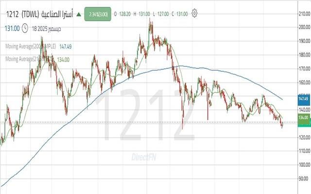 مباشر للأبحاث: يتداول سهم "أسترا الصناعية" داخل اتجاه هابط واضح على الإطار الزمني اليومي؛ مع استمرار الضغوط البيعية وتداول السعر دون المتوسط المتحرك، في حين يقترب مؤشر القوة النسبية(RSI) من مناطق التشبع البيعي؛ مما يشير إلى إمكانية معاودة اختبار مقاومة 130.90 ريال.