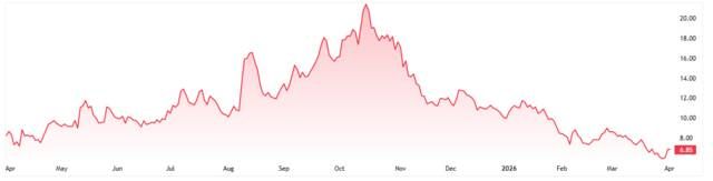 واصل سهم SOUN اتجاهه الهابط منذ بداية عام 2026، متراجعًا من 12.30 دولارًا إلى قاع 5.85 دولارًا، قبل أن يبدأ ارتدادًا تدريجيًا بنهاية مارس، مدعومًا بإشارات انعكاسية وتحسن في أحجام التداول.