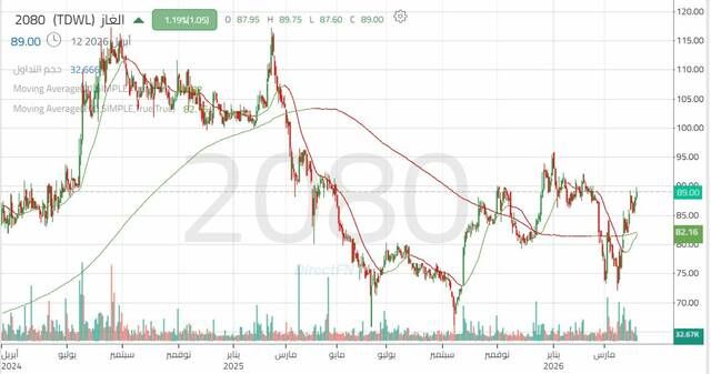 واختراق مستوى 88.70 ريال والثبات أعلاه بأحجام تداول قوية قد يدعم استمرار الصعود نحو 90.70 – 92.50 ريال، وفي حال استمرار الزخم قد يمتد الارتفاع إلى 94.35 ريال.