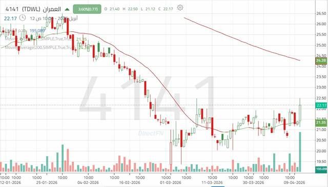 منذ مطلع عام 2026، يتداول سهم العمران ضمن اتجاه هابط، مستكملاً الاتجاه الهابط الرئيسي الممتد من العام الماضي. وقد تمكن السهم من اختراق مستوى الدعم عند 23.65 ريال؛ ما أدى إلى تسارع وتيرة التراجعات واستمرار الضغوط البيعية حتى شهر مارس.