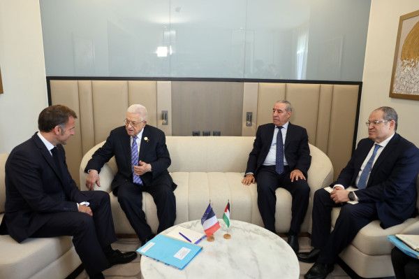 كما اجتمع ماكرون مع الرئيس عباس على هامش القمة لمناقشة تنفيذ وقف إطلاق النار، وتسهيل وصول المساعدات الإنسانية إلى القطاع، واستكمال الانسحاب الإسرائيلي، ومنع ضم الضفة الغربية ووقف الاستيطان، واستعادة الأموال الفلسطينية المحتجزة لدى إسرائيل لتمكين الحكومة الفلسطينية من أداء مهامها تجاه المواطنين. وشكر عباس الرئيس الفرنسي على اعتراف بلاده بدولة فلسطين وترؤسها إلى جانب السعودية المؤتمر الدولي الرفيع المستوى لتسوية القضية الفلسطينية وتنفيذ حل الدولتين.