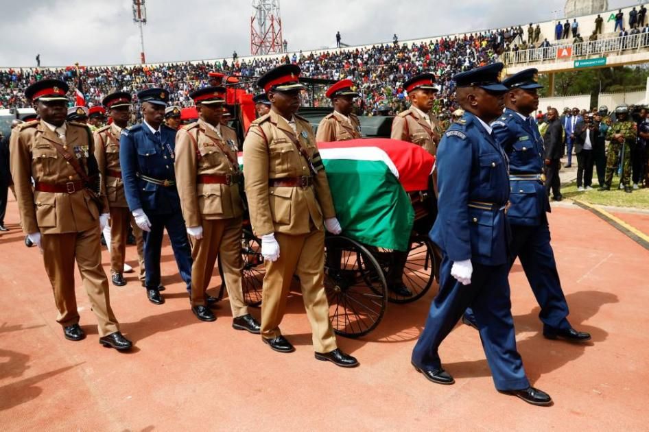 وخرجت حشود ضخمة إلى الشوارع في وقت مبكر من الخميس، واقتحمت المطار الرئيسي في البلاد عندما وصلت الطائرة التي كانت تنقل جثمانه ثم اخترقت بوابة ملعب نيروبي الذي استضاف الجثمان. وأطلقت قوات الأمن النار في الهواء ثم أطلقت الشرطة الغاز المسيل للدموع لتفريق الحشود.