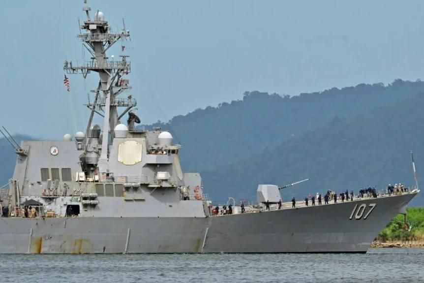 وأمكن مشاهدة السفينة الحربية الأمريكية قبالة سواحل بورت أوف سبين، عاصمة ترينيداد وتوباغو، الدولة المؤلفة من جزيرتين قبالة سواحل فنزويلا.