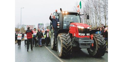 ورفعت لافتات كتب عليها: «لا لاتفاق الاتحاد الأوروبي-ميركوسور» و«دعم الزراعة الإيرلندية» معلقة على بعض من الجرارات التي تقاطرت إلى بلدة صغيرة تقع في منتصف الطريق بين دبلن وغالواي، غداة الموافقة الأوروبية.