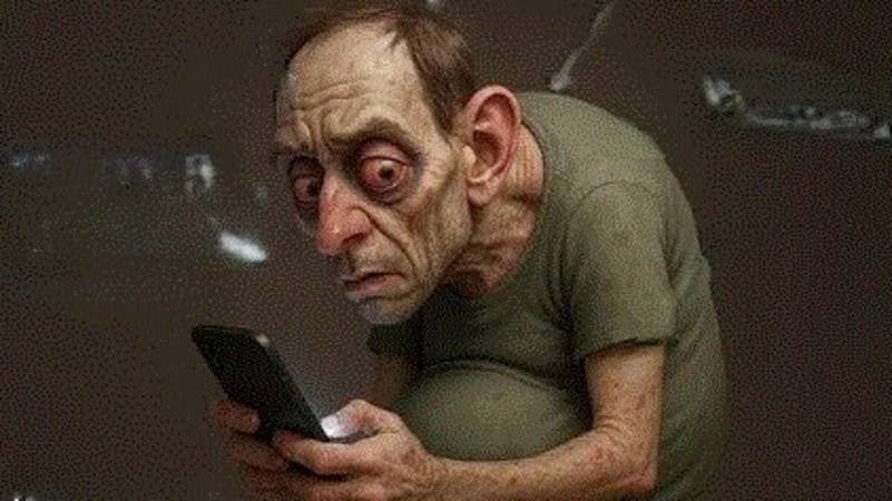 وأظهر النموذج، الذي وُصف في وسائل الإعلام البريطانية بـ"المقزز والمخيف"، إنساناً ذا عينين غائرتين، وبشرة باهتة، وظهرٍ مقوّس، ورقبة منحنية تُعرف بـ"tech neck" (أو رقبة التكنولوجيا)، إلى جانب تورّم في القدمين وبقع صلع في الرأس.
