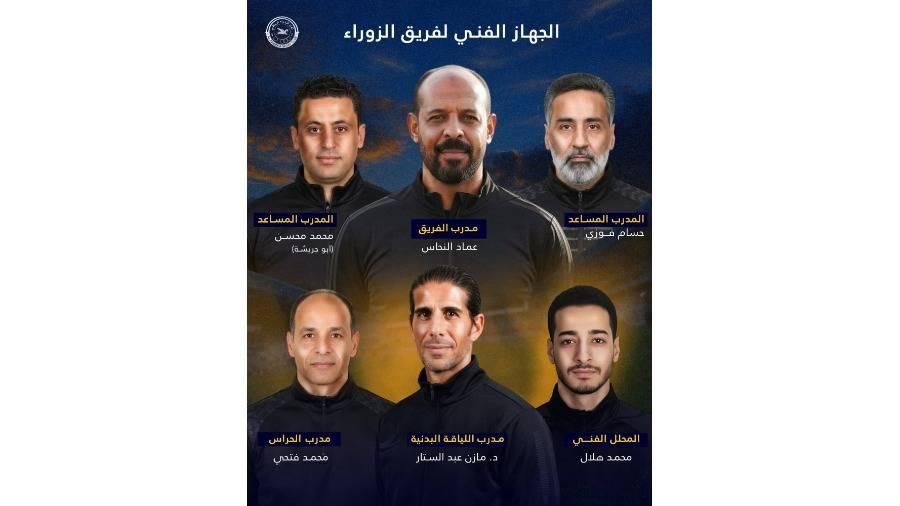 وقالت الإدارة في بيان إن 'الطاقم الفني الجديد لزعيم الكرة العراقية يتألف من المصري عماد النحاس، مدرباً، العراقي حسام فوزي، مدرباً مساعداً، المصري محمد محسن أبو جريشة مدرباً مساعداً، المصري محمد فتحي، مدرباً لحراس المرمى، العراقي د. مازن عبد الستار، مدرباً للياقة البدنية، ومحمد هلال، محللاً فنياً.