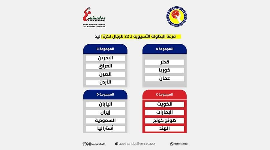 أسفرت قرعة البطولة الآسيوية الـ22 لكرة اليد المؤهلة إلى «مونديال ألمانيا 2027»، والتي ستقام في الكويت يناير المقبل، عن وقوع منتخبنا في المجموعة الثالثة مع منتخبات الكويت صاحب الأرض، والهند وهونج كونج.