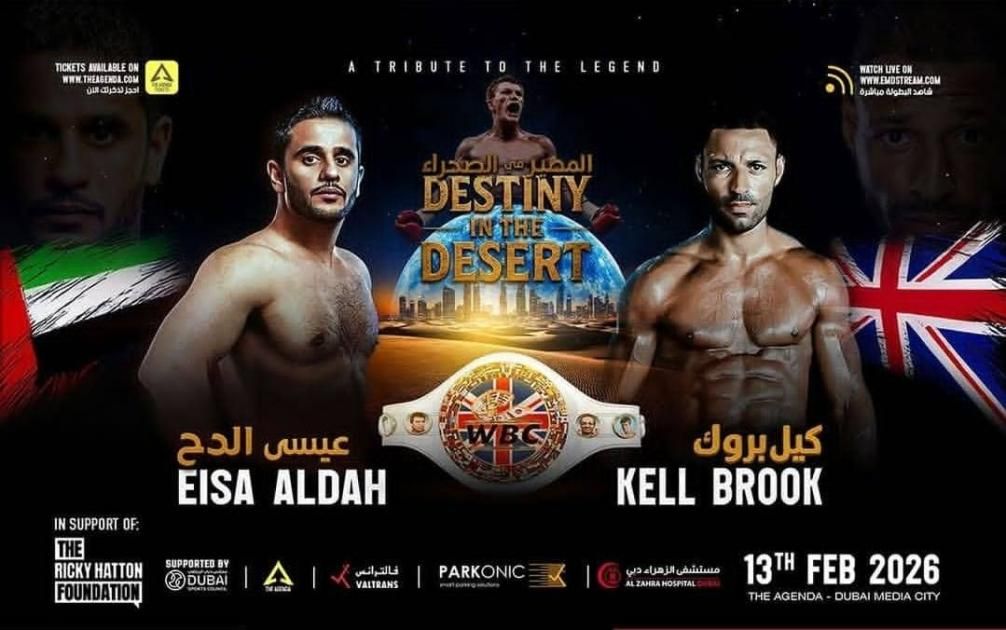 يعود الملاكم الإماراتي عيسى الدح إلى حلبة الملاكمة من جديد، من بوابة بطولة المحترفين الدولية يوم 13 فبراير 2026 المقبل بدبي، حيث يواجه خلالها بطل العالم كيل بروك، على (حزام WBC)، أحد أبرز وأهم أحزمة ملاكمة المحترفين على مستوى العالم.