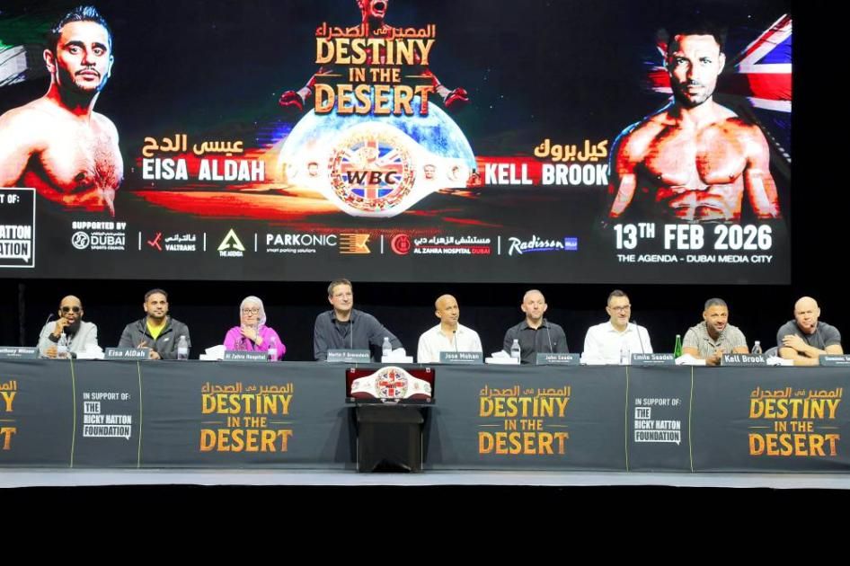 تستضيف دبي بطولة «المصير في الصحراء» للملاكمة، يوم 13 فبراير 2026، والتي تجمع بين البطل الإماراتي عيسى الدح، أول ملاكم محترف في تاريخ الدولة، والبطل البريطاني العالمي كيل بروك، حامل لقب الاتحاد الدولي للملاكمة «IBF» سابقاً، وذلك على لقب بطولة الاتحاد العالمي للملاكمة «WBC».