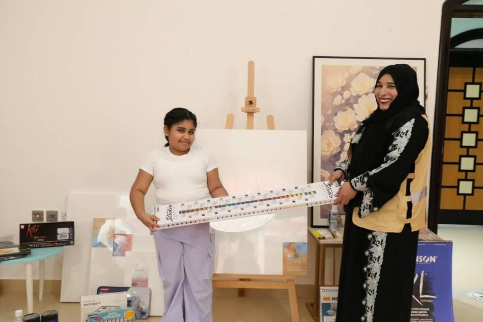 بلمسة أمل وفرشاة حلم، حوّلت مؤسسة «تحقيق أمنية» حلم مهرة إلى لوحة نابضة بالحياة، وذلك بالتعاون مع جمعية بسمة الإمارات للأمراض المُزمنة والإنسانية- رأس الخيمة، ونجحت في رسم ابتسامة على وجه الطفلة البالغة من العمر 10 سنوات، بعد أن تحقّقت أمنيتها بالحصول على مجموعة متكاملة من أدوات الرسم وزاوية خاصة في منزلها لممارسة شغفها الفني.