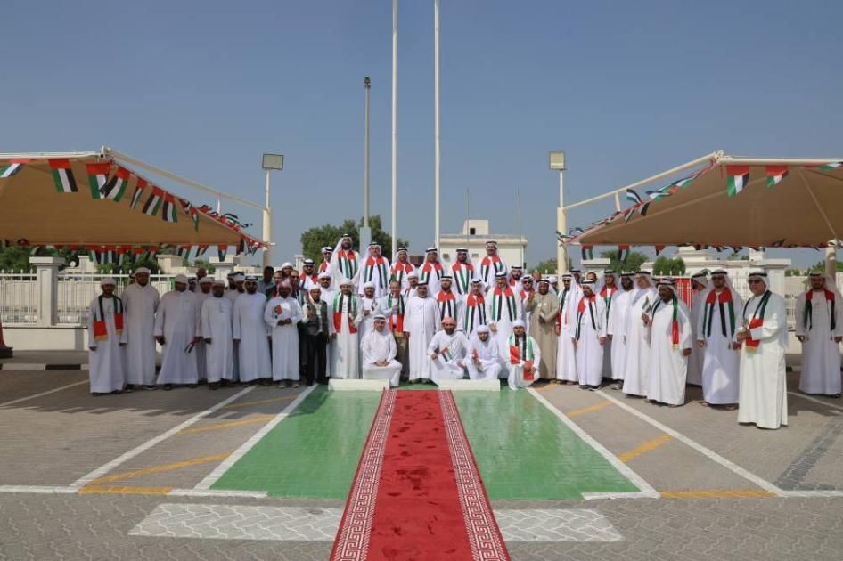 وتجسدت أبرز مراسم الاحتفالية باصطفاف الجميع أمام سارية العلم الشامخة على بعد أمتار من بوابة المبنى ليتم رفع علم دولة الإمارات، بالتزامن مع عزف النشيد الوطني.